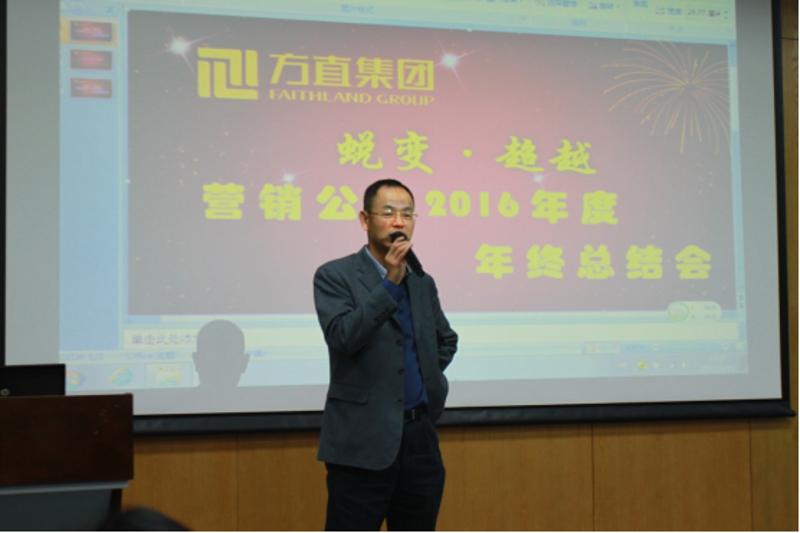集團助理總經(jīng)理芮永明總隨后發(fā)表講話,他對營銷公司的團隊在2016年取得的成績予以了肯定,指出營銷公司在管理方面存在的一些問題,將總結(jié)會的主題定為“蛻變·超越”,蛻變來源于我們對于整個營銷公司存在的問題的思考,只有發(fā)現(xiàn)問題我們才能走得更好走得更遠(yuǎn)。超越是2017年的目標(biāo),從公司運營、銷售團隊、渠道板塊、行政板塊四個方面加強管理,超越自己為公司創(chuàng)造更好的未來。希望在2017年方直不光能賣得好,還要賣得漂亮。