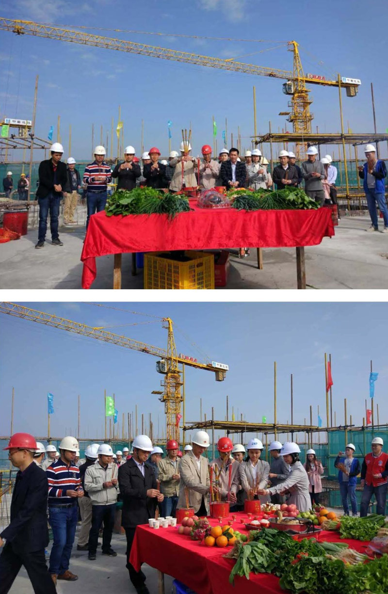 灌漿封頂,齊心協力切開金豬,鞭炮齊鳴,祝賀方直東岸三期項目儀式圓滿成功!