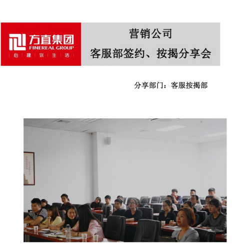 為提升我公司銷售、客服、財務人員的業務能力,打造一支業務過硬、服務優良、工作高效的營銷隊伍,公司組織客服按揭部同事,于2017年5月16日晚19:30在君御EMBA會議室為相關部門同事進行合同簽約及按揭貸款的培訓,銷售部、渠道部、財務部領導及同事共計40 人參加了本次培訓。