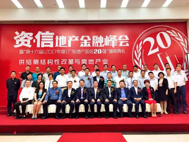 2017年6月8日,“資·信”地產金融峰會暨第十六屆(2017年度)廣東地產資信20強頒獎典禮在廣州盛大舉行。