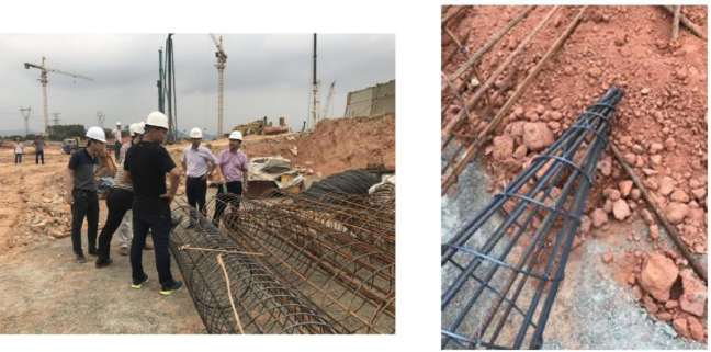 6月2日下午,考察小組由考察項目樁基單位技術負責人陪同開展考察,樁基單位技術人員詳細介紹了螺桿樁及其成樁的原理、過程及作用,隨后考察小組于施工現(xiàn)場參觀了一根設計樁長為12.5米直徑800mm的螺桿灌注樁全施工過程。