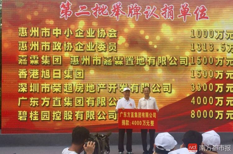 當市委書記、市人大常委會主任陳奕威接受第二批愛心企業捐款時,氣氛達到最熱烈,臺下響起熱烈掌聲——廣東方直集團有限公司捐贈4000萬元!