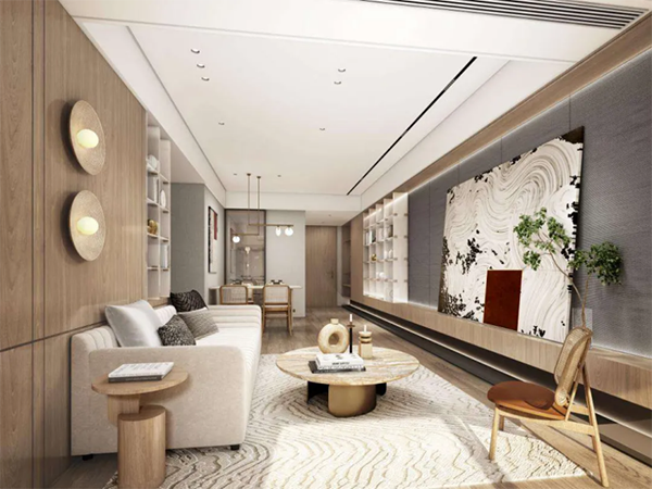 當(dāng)營銷中心神秘的面紗拉開后,映入眼簾的是輕奢精致的大廳,從木質(zhì)選材與現(xiàn)代設(shè)計、到感覺重返自然的草木生態(tài)造景,質(zhì)樸無華的自然元素與現(xiàn)代元素相結(jié)合。