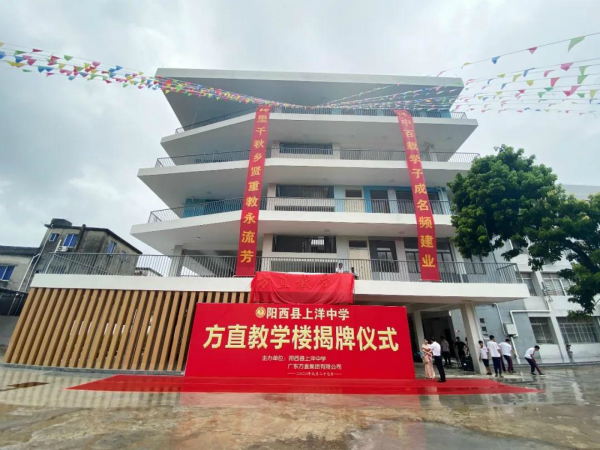 2020年9月27日,方直集團(tuán)捐建的上洋中學(xué)“方直教學(xué)樓”落成典禮暨移交儀式隆重舉行!陽江市委常委、陽西縣委書記孫波同志和方直集團(tuán)董事長陳專先生出席揭牌儀式。陽西縣委常委、縣政府、人大、政協(xié)、教育局和鎮(zhèn)委鎮(zhèn)政府等相關(guān)領(lǐng)導(dǎo)、方直集團(tuán)相關(guān)領(lǐng)導(dǎo)及上洋中學(xué)全體師生近千人全程參與。