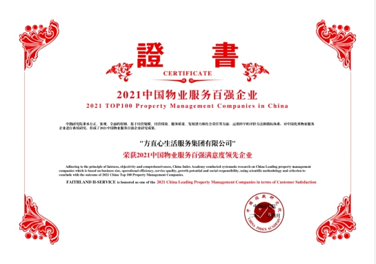 ▲2021中國物業(yè)服務(wù)百強(qiáng)滿意度領(lǐng)先企業(yè)