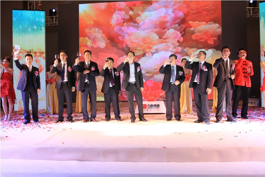 晚會主要分三部分進行,第一部分為祝酒環節,陳董以及方直各位高管同舉杯,隨著體現陳董創業漫畫的展播,方直集團2013年迎春晚會正式開始!